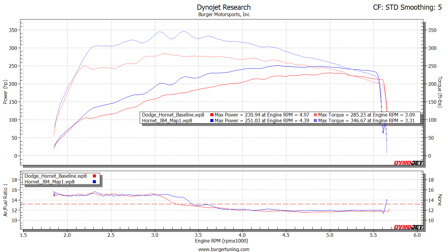 Power gains of up to 30hp and 80tq to the wheels peak on a stock Dodge Hornet 1.3L & 2.0L!